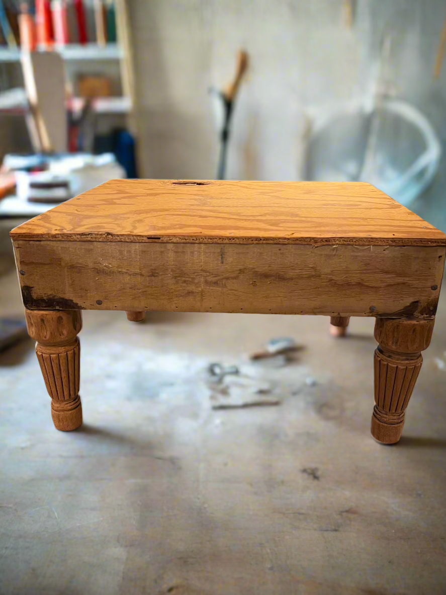 A great-grandmother's needle work on an antique footstool was falling apart. Out with the old and in with a new inspiration--this one is going through a transformation. It will join the Panache collection.