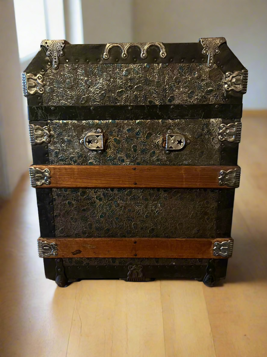 An old chest saved from a buried mess is now taking a shine to a new life -- and destined for The Emeraude Collection. The Flourishing Atelier can customize this for you.